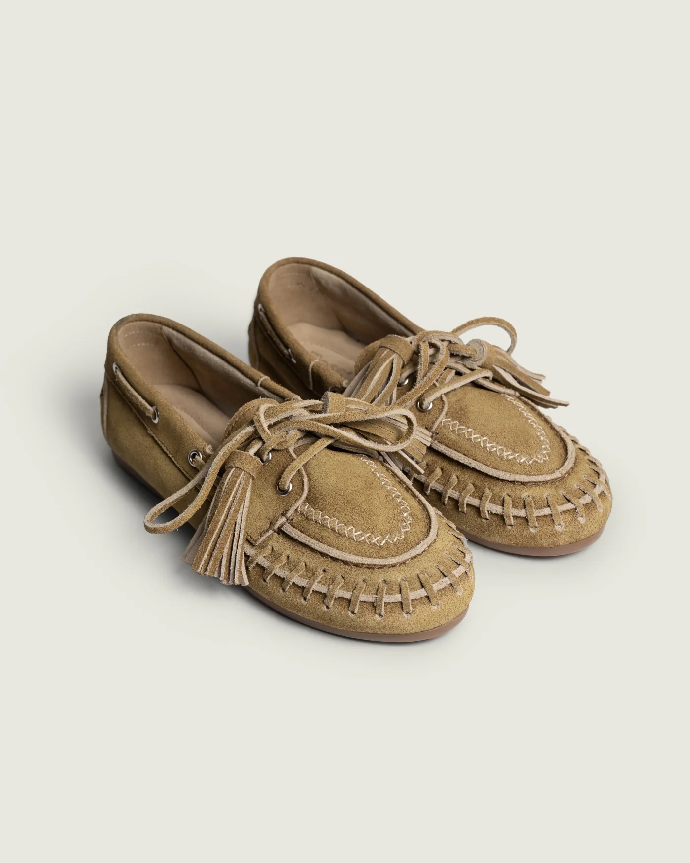 Crafted from the highest quality, vintage-finished suede, these boat-style loafers carry the spirit of the open plains and time-honored tradition. The hand-tied suede tassels and moccasin-inspired stitching echo age-old craftsmanship passed down through generation, where every detail tells a story.