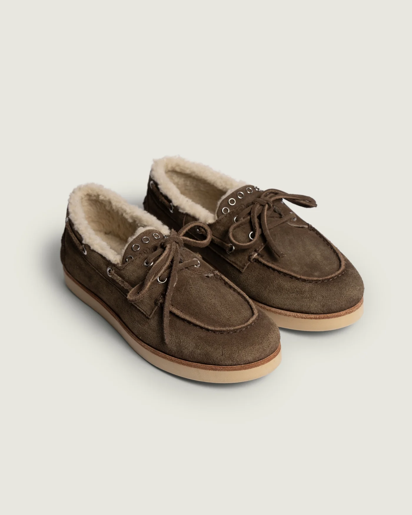 Vintage charm meets effortless comfort in these boat-style loafers, now updated with a cozy fur lining for added warmth and luxury. Crafted from refined, vintage-finished suede, they feature sturdy metal rings and a slightly thicker sole designed for the winter months, plus an ultra-soft cushioned footbed that ensures a flawless fit, making them as comfortable as they are stylish.