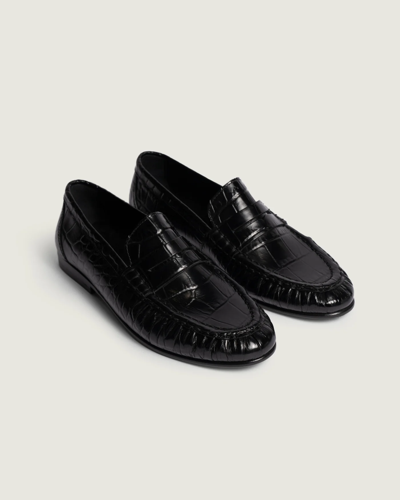The Posa penny loafer with wrinkle in croco leather, representative of Posa heritage, speaks of classic elegance. With its supple Italian materials and refined, streamlined silhouette, this shoe is the ultimate statement of everyday elegance.
