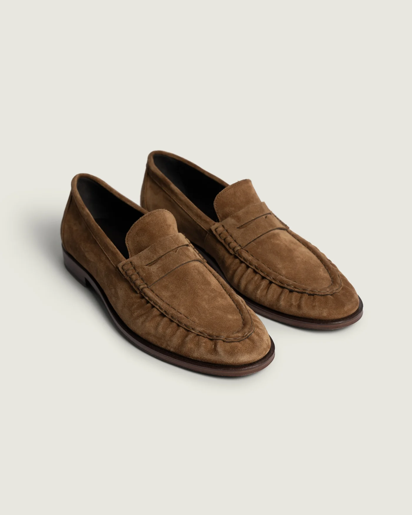 The Posa penny loafer with wrinkle in suede, representative of Posa heritage, speaks of classic elegance. With its supple Italian materials and refined, streamlined silhouette, this shoe is the ultimate statement of everyday elegance.