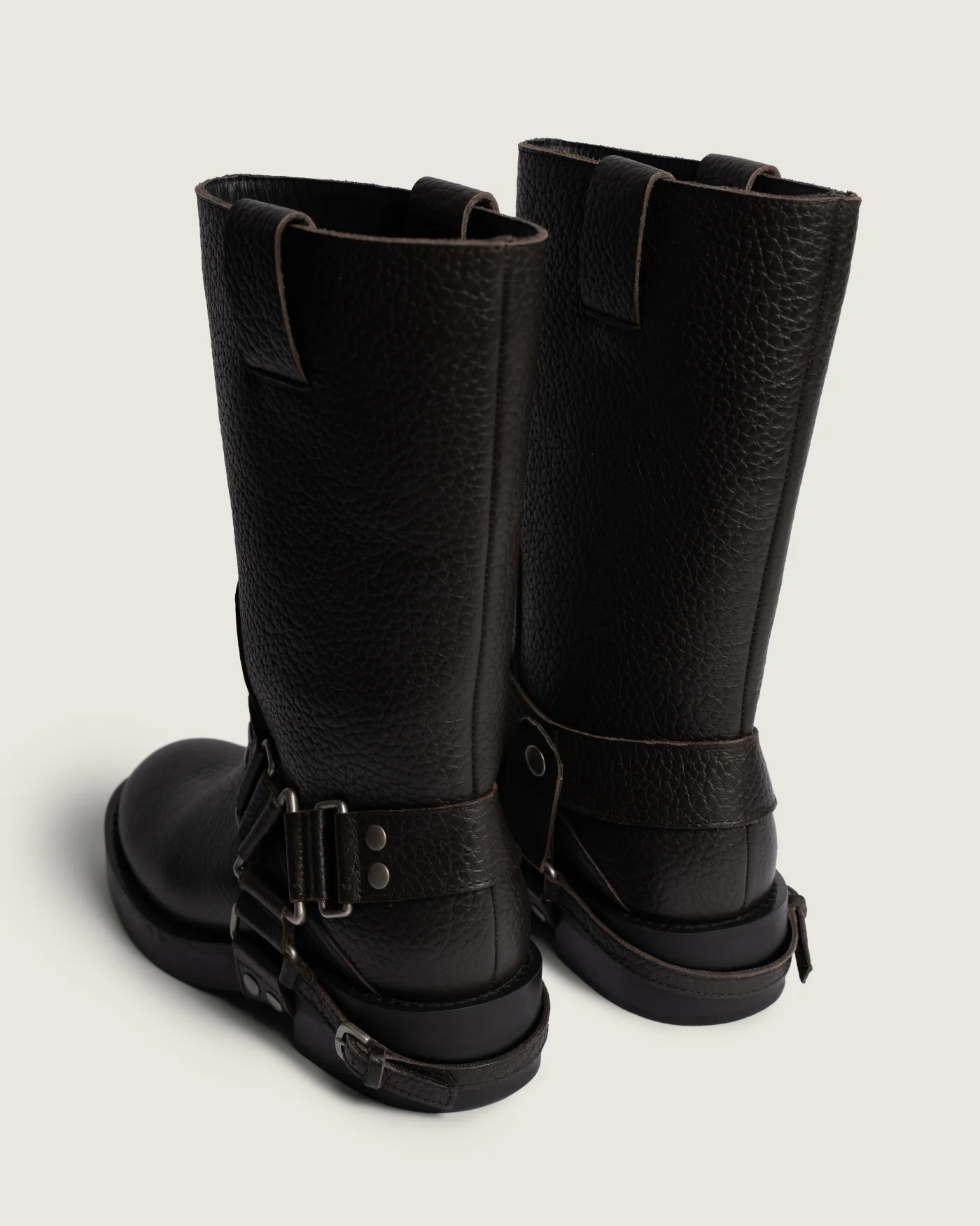 Tough elegance, redefined. The Tora Boot brings statement-making strength to cold-season dressing, crafted in richly grained leather and grounded by a bold, structured sole. Signature buckle straps and tonal hardware add a utilitarian edge, while a soft, supportive footbed ensures all-day ease. Designed for movement, made for presence, this is winter’s most powerful silhouette.