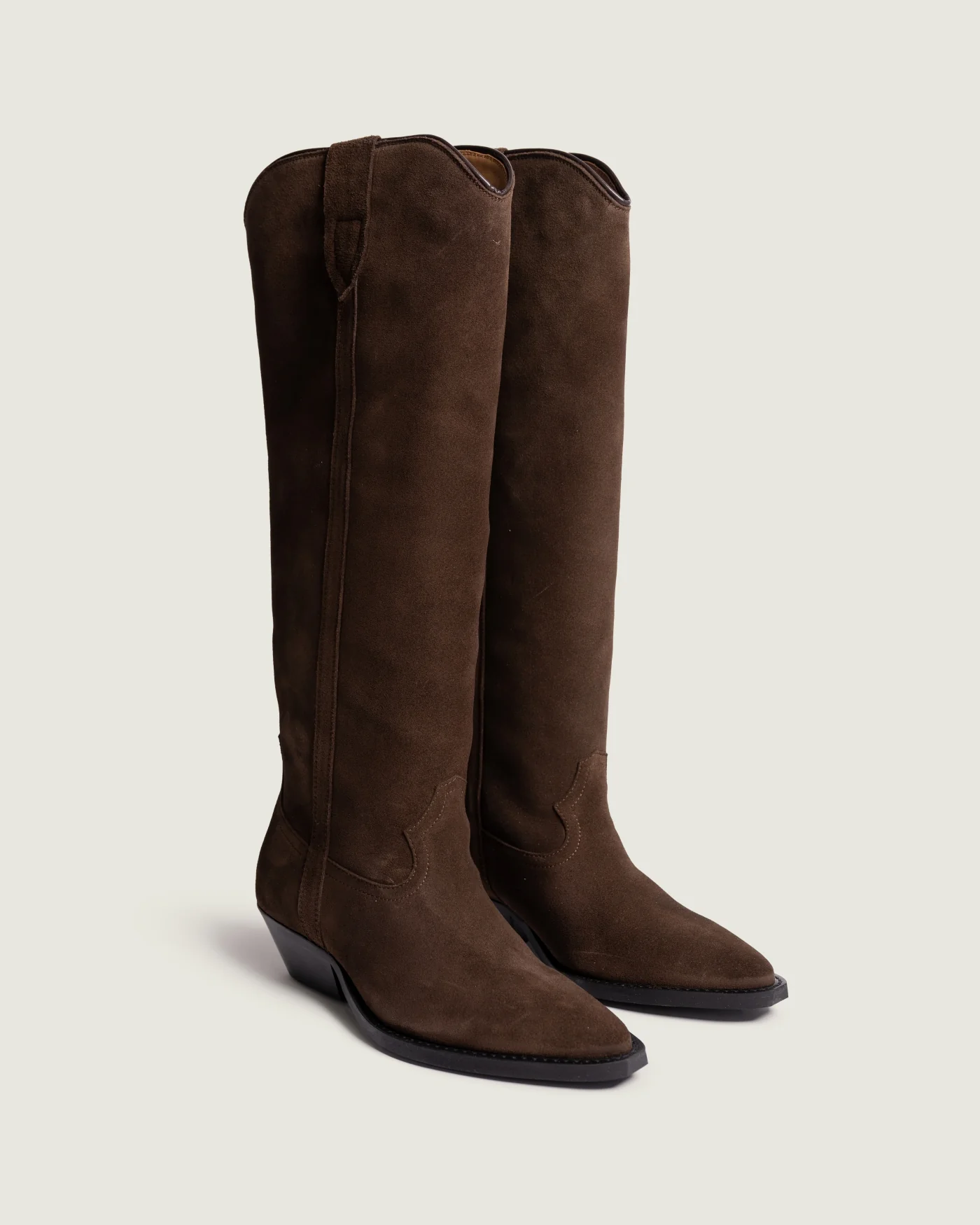 These boots are handcrafted from premium-quality Italian suede that develops character over time. Featuring a classic Western silhouette with a gently curved shaft, pointed toe, and sturdy stacked heel, they strike the perfect balance between rugged charm and timeless elegance. Designed with a European fit for all-day comfort, whether you're navigating city streets or wide-open spaces, these boots bring effortless style to every step.